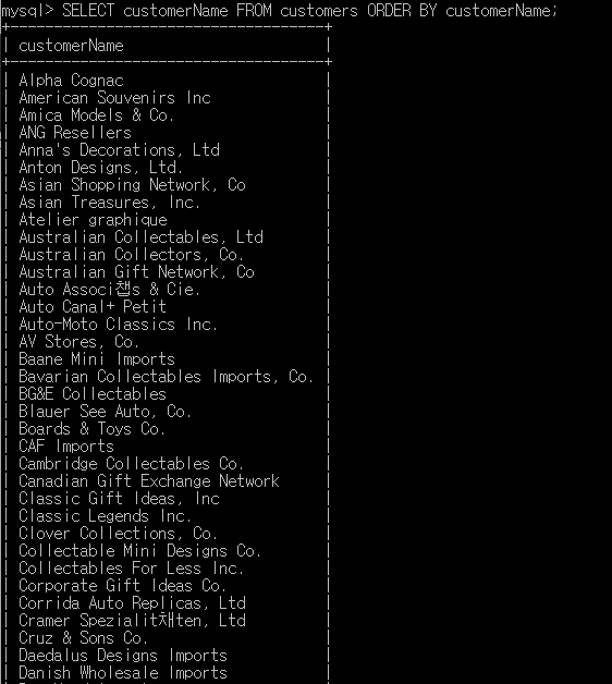 Ex3) SELECT customerName FROM customers ORDER BY customerName;